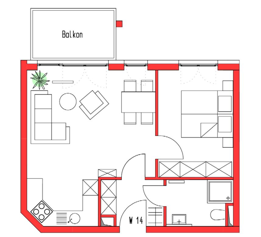 Apartment ca. 50m² mit Wohn- Essbereich einschl. 43“ Flachbildschirm,